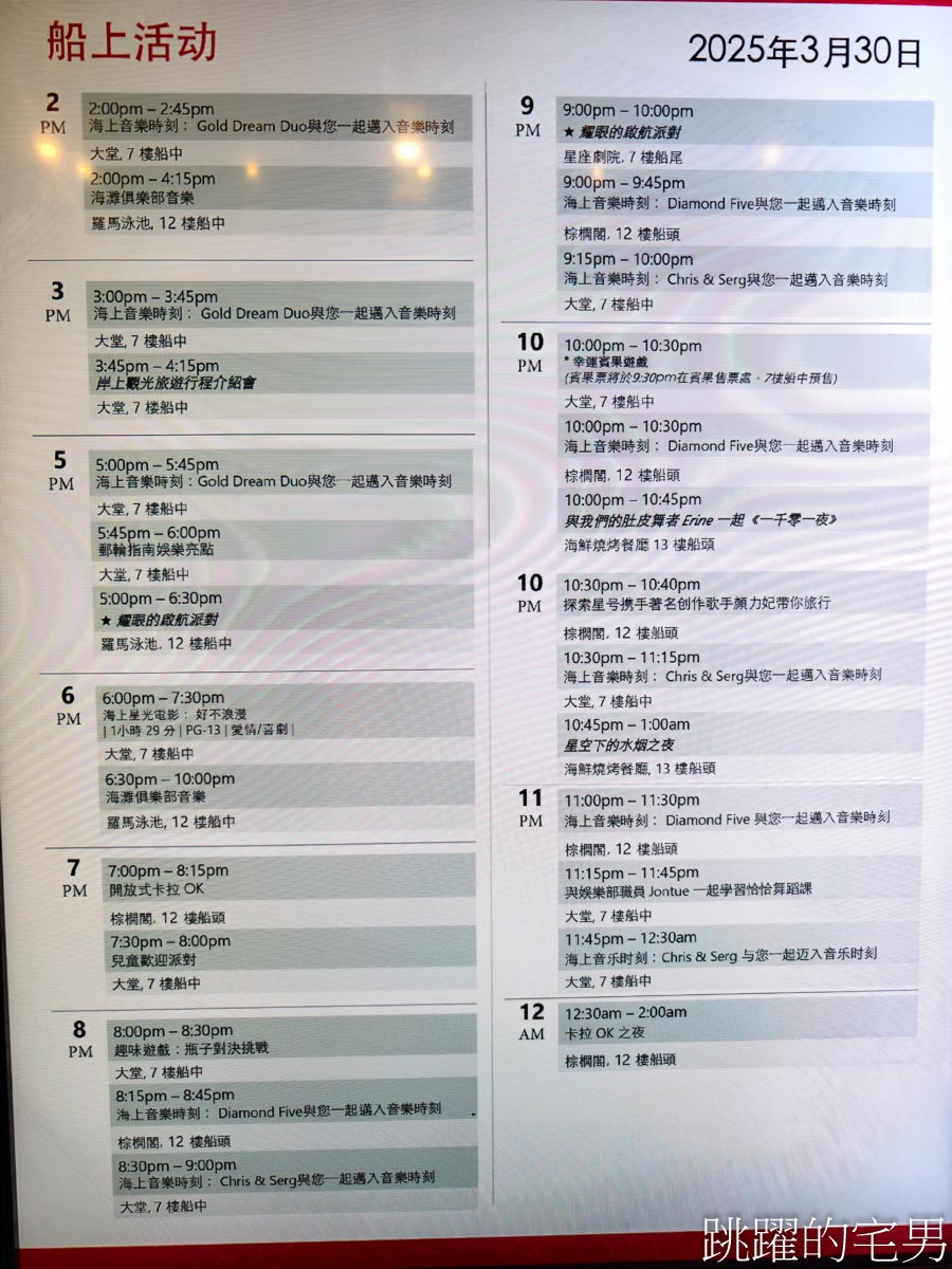 探索星號的船上活動超多,待在船上的時間一點也不會無聊…