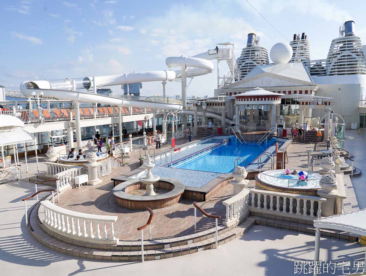 基本上搭遊輪就像是住飯店啦,商店街、看表演、泳池、籃球場、博弈場通通都有…